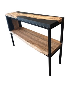 £3,665.14 -£1,187.54 £2,477.60This epoxy resin console is handcrafted. It combines the elegance of olive wood, transparent black resin and a solid walnut shelf. Carefully designed, this high-end piece of furniture is perfect for enhancing your interior with style. Its natural and luxurious design will bring a unique artistic touch to your space.