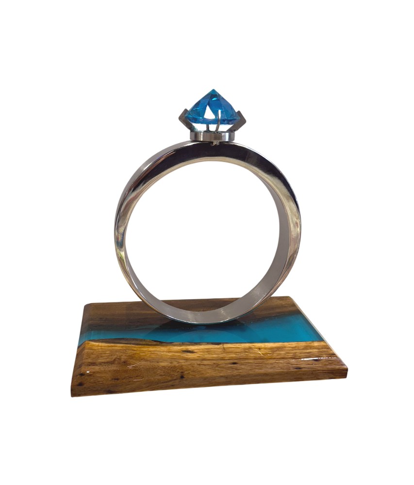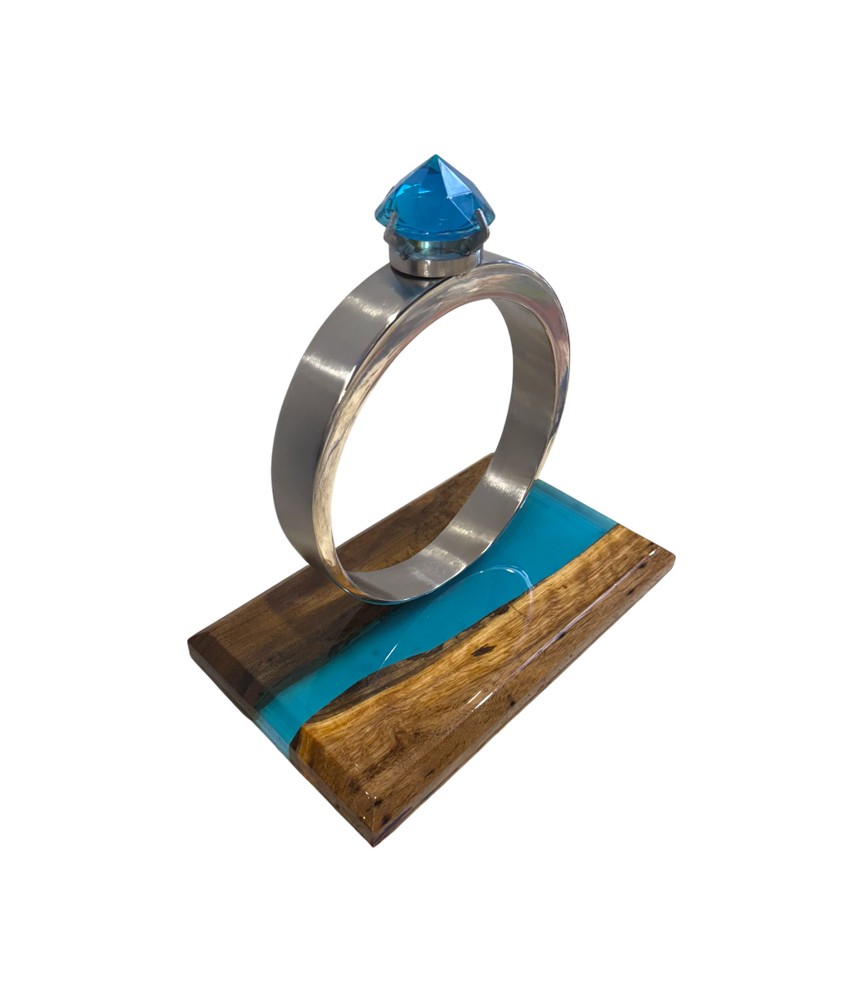 Monumental Ring – Brushed Metal, Turquoise & Walnut Epoxy Resin
