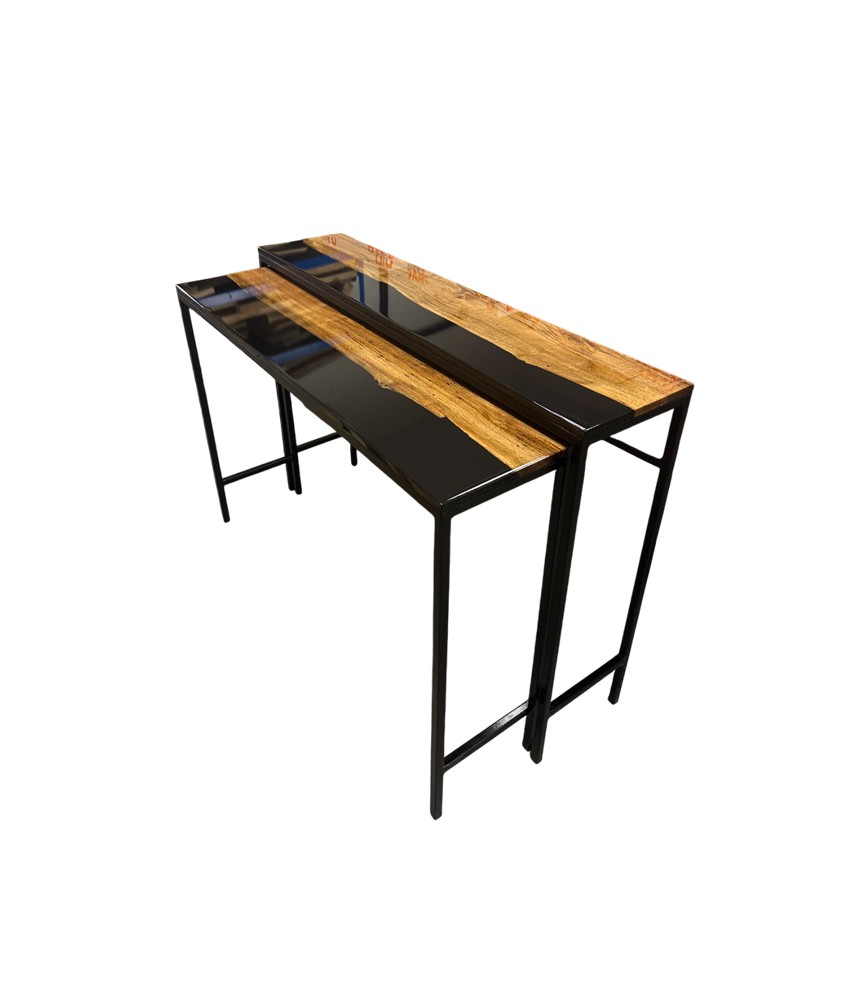 This walnut and black epoxy resin nesting console is an original creation signed by Tey – World’s Art. It consists of two complementary consoles designed to interact or stand independently.