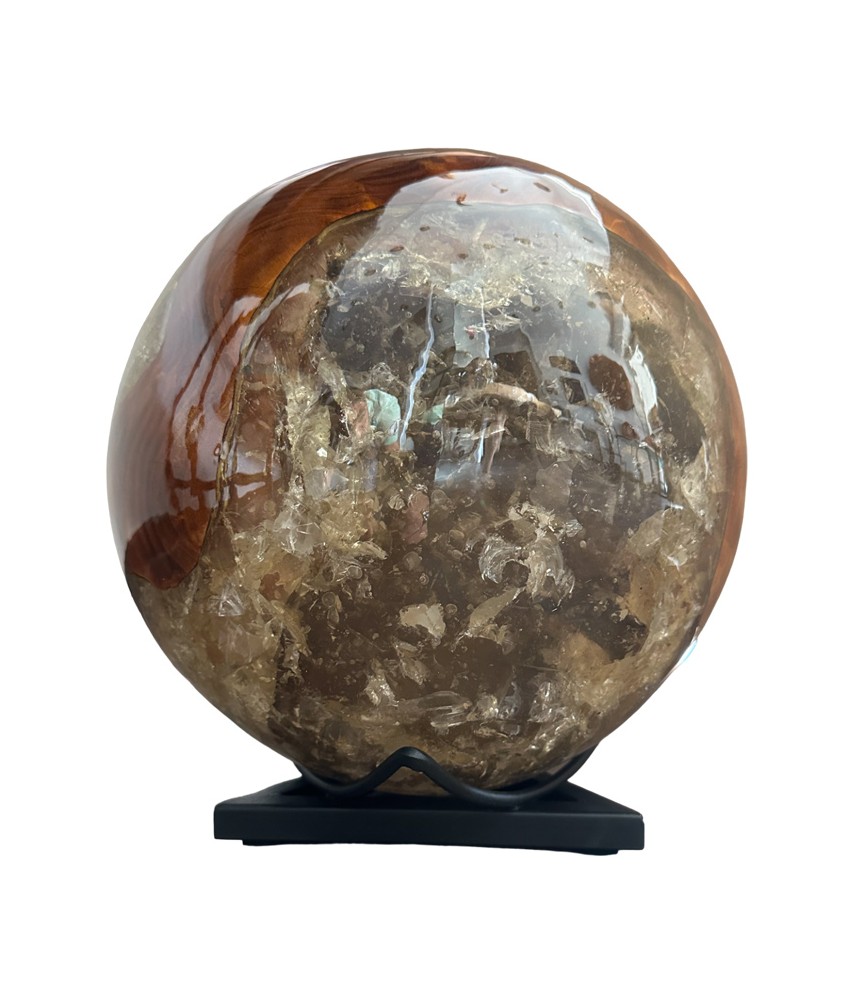 Sculptural sphere in solid teak and clear epoxy resin