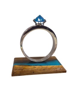 Monumental Ring – Brushed Metal, Turquoise & Walnut Epoxy Resin
