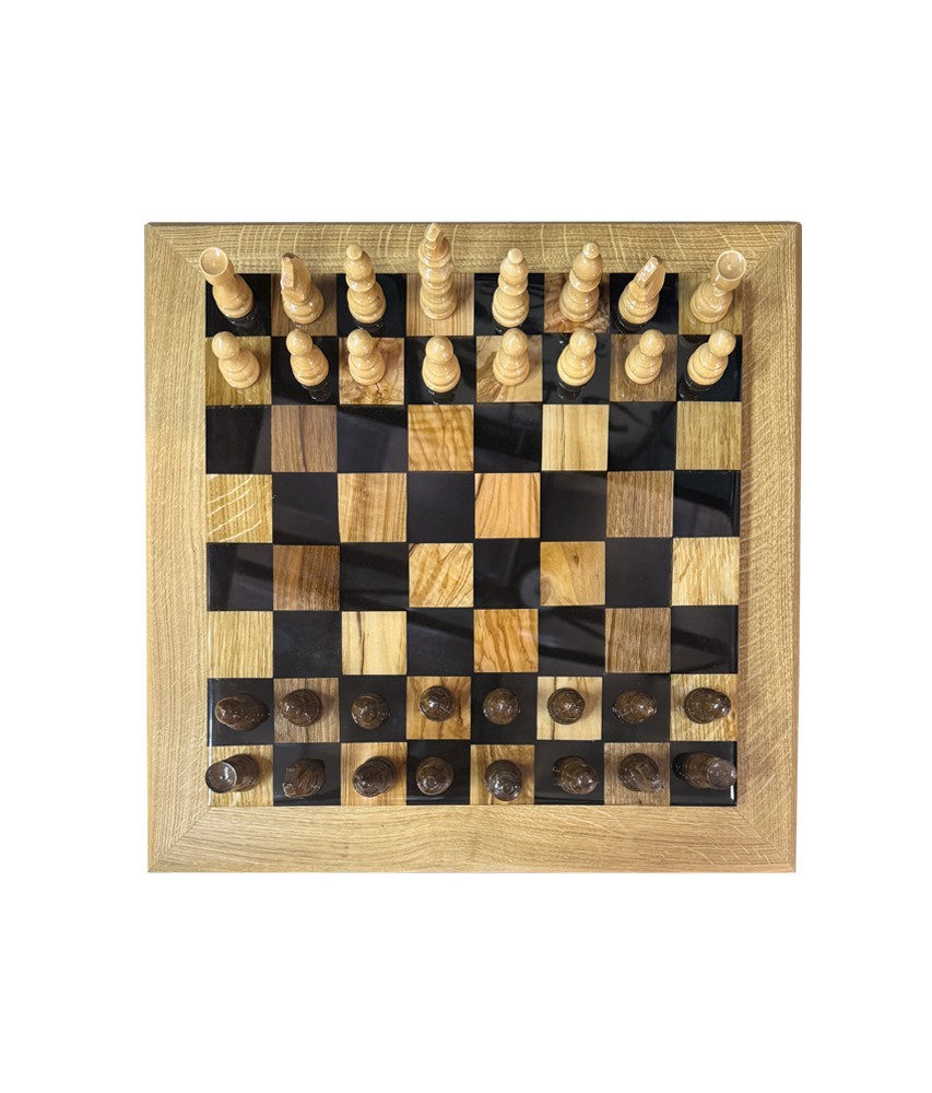 Tablero de Ajedrez en Roble y Nogal Con Revestimiento Epoxi Negro
