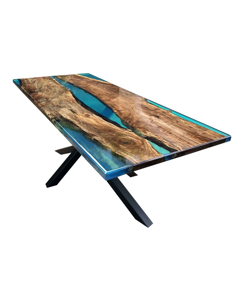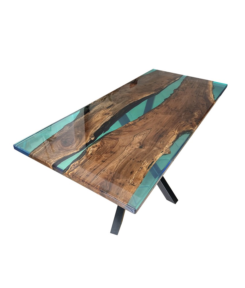 - Nogal Natural/ Resina turquesa / Metal Negro