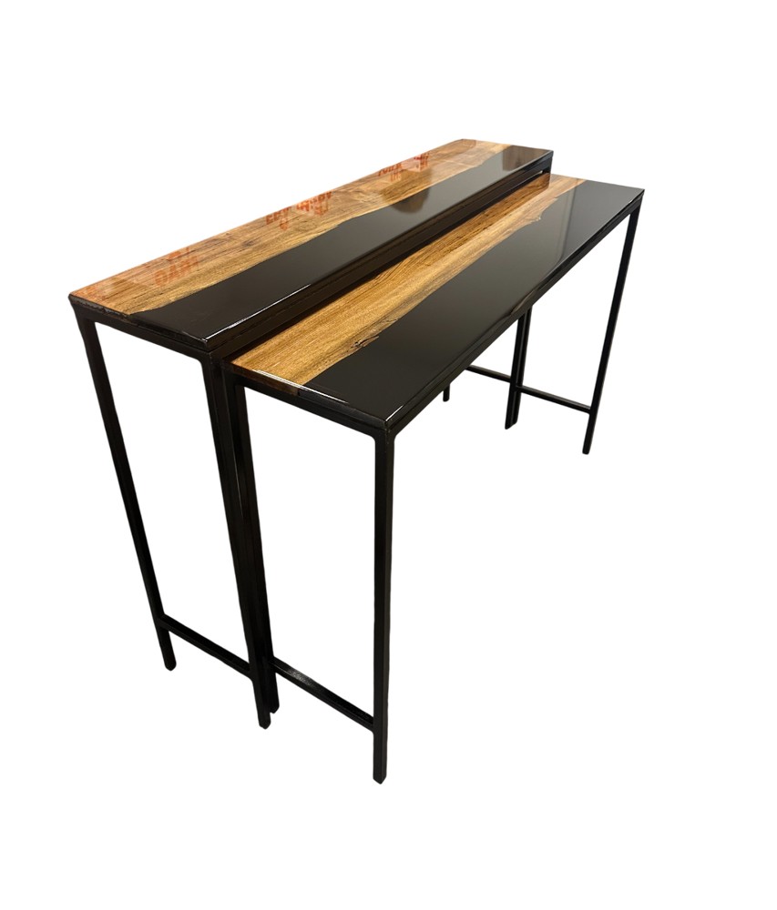 Cette console gigogne en noyer et résine époxy noire est une création originale signée Tey – World’s Art. Elle se compose de deux consoles complémentaires, pensées pour dialoguer ensemble ou exister séparément.