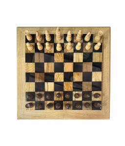 Tablero de Ajedrez en Roble y Nogal Con Revestimiento Epoxi Negro